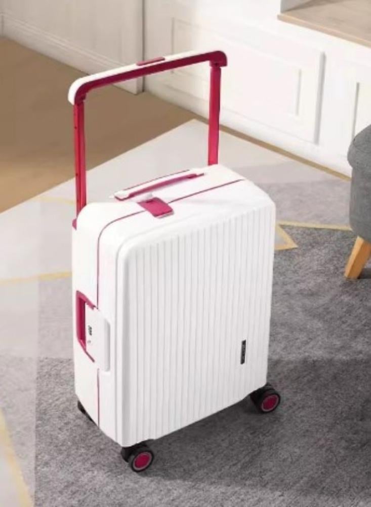 تعد حقيبة ترولي مقاس 20 بوصة من الخيارات المثالية للمسافرين الذين يبحثون عن حقيبة مريحة وعملية للسفر، يتميز تصميمها الرائع واللون الأبيض الأنيق الذي يضفي عليها مظهراً عصريًا، تم تصميم هذه الشنطة خصيصاً لتناسب معايير الأمتعة المسموح بها في قمرة الطائرة، مما يجعلها الخيار المثالي للرحلات القصيرة أو السفر للعمل.