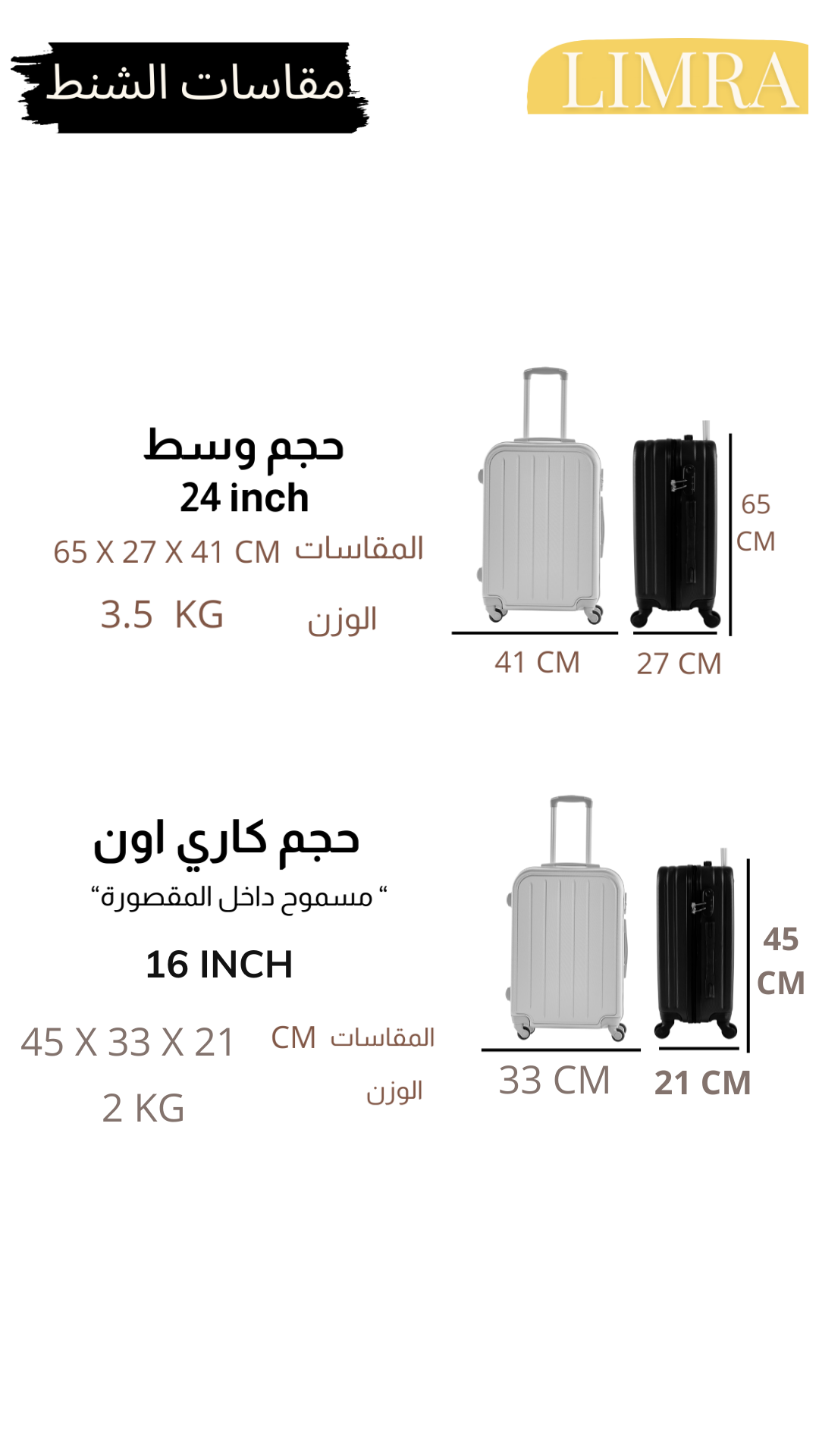 - تصميم عصري وأنيق يمنح الشنط مظهرًا فخمًا يضيف لمسة من الأناقة لكل مسافر.