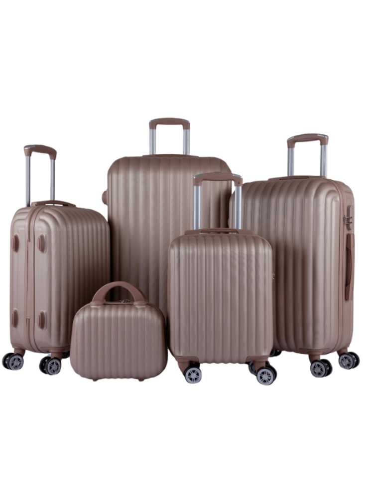 طقم شنط سفر مكون من 5 حقائب أمتعة لون ذهبي